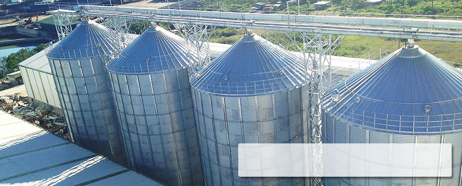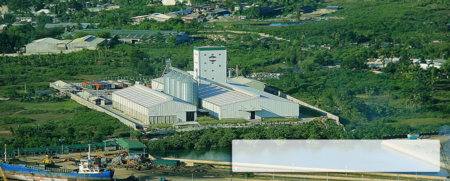 SILO STORAGE : Four (4) units bulk storage space for grain materials (Corn, Wheat) with a capacity of 1,500 metric tons/unit. It is also equipped with temperature monitoring system and installed with computer controlled exhauster and blower that maintain the correct temperature and humidity.